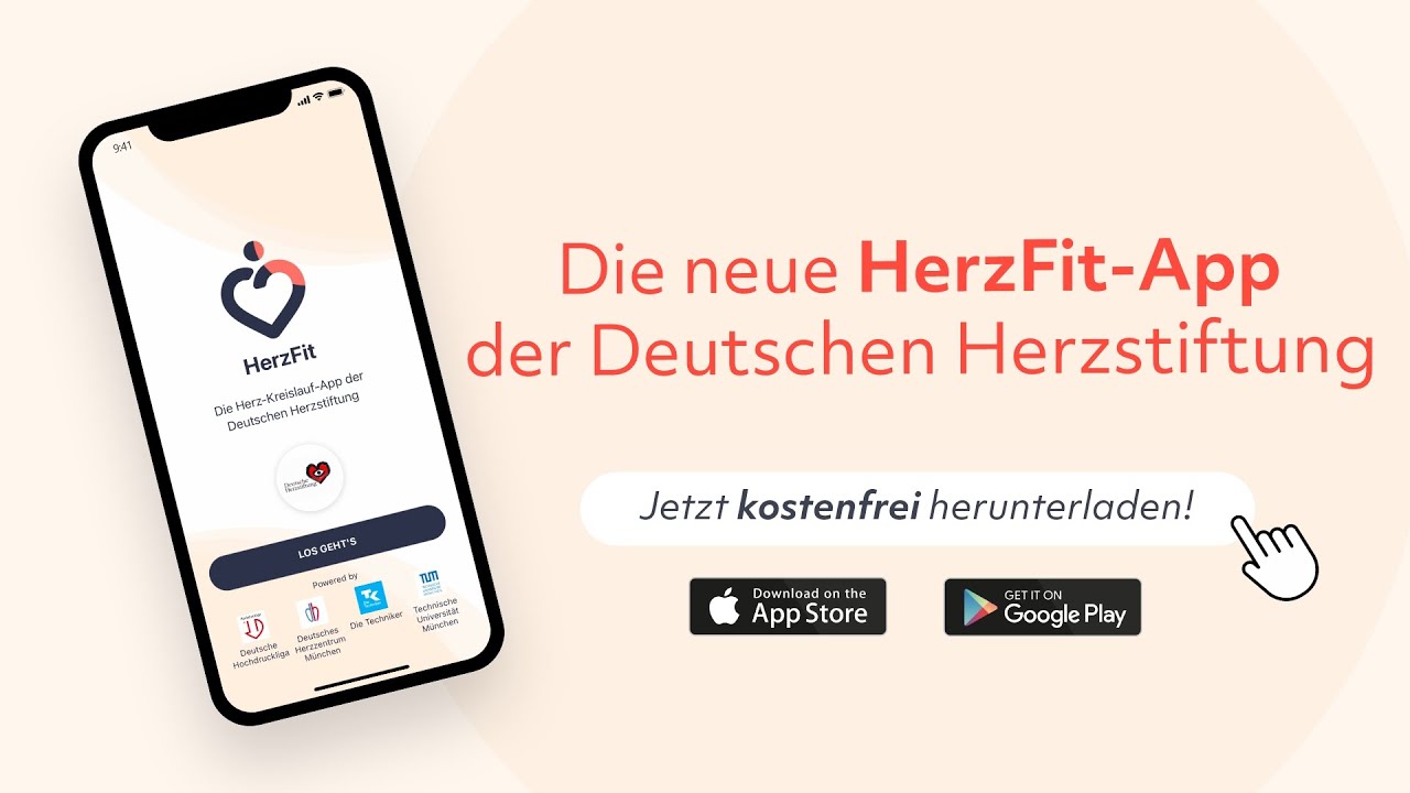 *HerzFit – Die App der Deutschen Herzstiftung wurde entwickelt mit Unterstützung der Partner Techniker Krankenkasse, Deutsche Hochdruckliga sowie Deutsches Herzzentrum München, Technische Universität München und DigiMed Bayern.