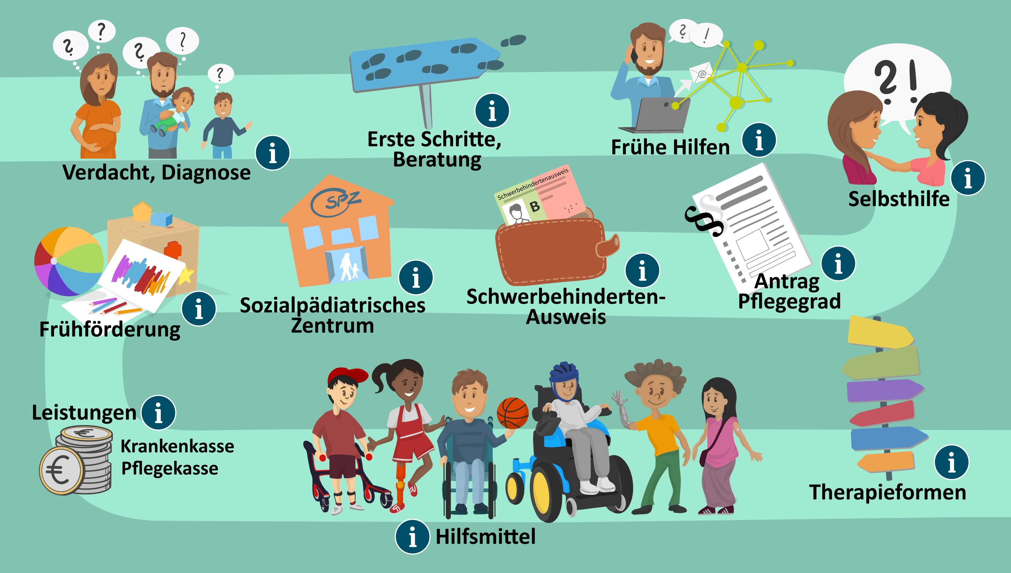 Der neue Bereich auf der Webseite des Pflegewegweisers NRW informiert mit kurzen informativen Texten und interaktiven Grafiken über eine Vielzahl an Hilfen – finanzielle, organisatorische und emotionale. So sind auch Erfahrungsberichte pflegender Eltern zum Thema Diagnose und Selbsthilfe auf der Webseite zu finden.